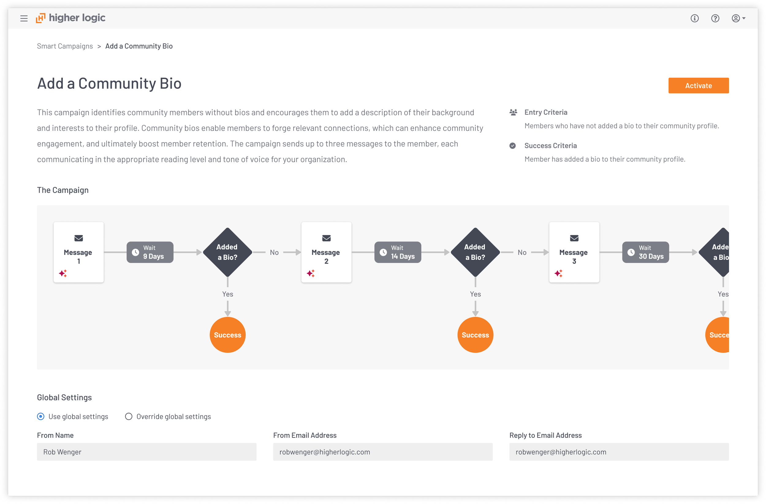 While associations see the potential efficiency AI can bring to small, resource-strapped teams, their generally conservative nature makes them wary of trusting it. They want full visibility into which parts of a campaign are AI-generated versus provided by Higher Logic, and nothing should reach members without their review and approval. They wouldn’t feel comfortable launching a Smart Campaign without the same level of transparency they’d have if they built it themselves.